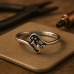 Vyrobený z pravého stříbra, tento jemný prsten ukazuje malé černé srdce vedle umělecky tvarované stopy tlapky – elegantní pocta zvláštnímu pouto mezi vámi a vaším mazlíčkem. Vintage inspirovaný design s oxidovanými detaily mu dodává nadčasové kouzlo – ideální jako prsten na slib, malý symbol zasnoubení nebo každodenní znak loajality a náklonnosti.