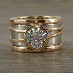 Vintage intarzovaný skleněný zlatý a stříbrný prsten